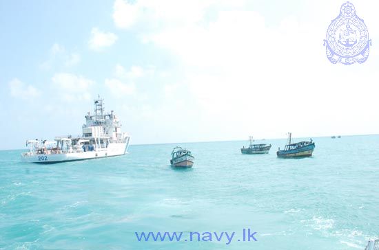 Sri Lanka Navy assisted in the exchange of the second batch of Indian and Sri Lanka fishermen released in accordance with the discussions between the two governments. Seventy-one Indian fishermen with fifteen fishing boats were handed over to the Indian Coast Guard Ship “Samudra Paharedar” at the International Maritime Boundary Line off Kankasanthurei on 24th January 2014. Fifty-nine Sri Lankan fishermen with four fishing boats were taken over from the Indian authorities in exchange.
