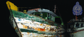 Sri Lanka Navy patrol craft attached to the Northern Naval Command on routine patrol rescued 04 Indian fishermen from a run-aground Indian fishing trawler in the seas south of Delft on 28th September 2014.