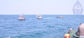 Naval vessels attached to the Northern Naval Command on routine patrol arrested 29 Indian fishermen and 07 Indian fishing trawlers engaged in bottom trawling in the seas off Delft on 12th February 2014.