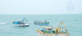Naval craft attached to the Northern Naval Command on routine patrol arrested 19 Indian fishermen along with 05 Indian fishing trawlers engaged in bottom trawling in the seas off Delft on 01st February 2014.