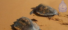 Timely action taken by the naval troops attached to Ma-oya Naval Sub Unit of SLNS Kelani in the Western Naval Command was able to save the lives of four turtles and release them to sea for safety with the assistance of the DFAR officials on 13th January 2015.