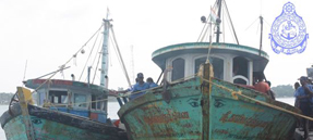 Naval troops attached to SLNS Gajaba of the North Central Naval Command arrested 08 persons with 1,359 kilograms of illegal fish catch along with an FGD and a Wallam engaged in illegal fishing using explosives in the general area of Kalupalama in Mannar on 25th October 2014.