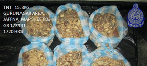 Naval personnel attached to SLNS Welusumana of the Northern Naval Command on information received recovered 15.3 kilograms TNT explosive in the general area Gurunagar on 09th December 2014
