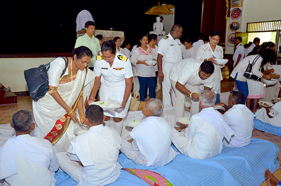 ඒ අනුව, එදින උදෑසන ගාලු මුවදොර වෙරළ තීරය පිරිසිදු කිරීමේ කටයුතු සිදුකළ අතර, නාවික හමුදා නිලධාරීන්ගේ ළමා සංගමයේ සාමාජික සාමාජිකාවන් විසින් එහිදී පැලයක් රෝපණය කරන ලදී. තවද, එදිනට යෙදී තිබූ ලෝක වැඩිහිටි දිනය නිමිති කරගනිමින් සේවා වනිතා ඒකකයේ ගරු සභාපතිතුමියගේ මූලිකත්වයෙන් වැලිසර පිහිටි ශ්රී ලංකා නාවික නෞකා ගැමුණු ආයතනයට අයත් කජුකැලේ නාවික විවාහක නිවාසයන්හි වෙසෙන නාවික පුද්ගලයන්ගේ දෙමාපියන් වෙනුවෙන් ශීල ව්යාපාරයක් පැවැත්විණි. එහිදී කාලීන ධර්ම දේශනා සහ ධර්ම සාකච්ඡා පැවැත්වූ අතර, එම අවස්ථාව සඳහා නාවික පුද්ගලයන්ගේ දෙමාපියන් විශාල පිරිසක් සහභාගී වී සිටියහ. සේවා වනිතා ඒකකයේ ගරු සභාපතිතුමිය ඇතුළු සාමාජිකාවන් සහ නිලධාරීන්ගේ ළමා සංගමයේ සභාපති, සත්යජිත් විජේගුණරත්න මහතා ඇතුළු සාමාජික සාමාජිකාවන් විසින් සිල් සමාදන් වූ දෙමාපියන් වෙත දානය පිළිගැන්වීමද එහිදී සිදු කෙරිණි. මෙයට සමගාමීව ත්රිකුණාමලයෙහි පිහිටි ශ්රී ලංකා නාවික නෞකා තිස්ස සහ බූස්ස, ශ්රී ලංකා නාවික නෞකා නිපුණ යන ආයතනයන්හි ද නාවික පුද්ගලයින්ගේ දෙමාපියන් විශාල පිරිසකගේ සහභාගීත්වයෙන් ශීල ව්යාපාර සංවිධානය කර තිබුණි.