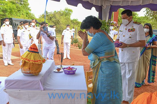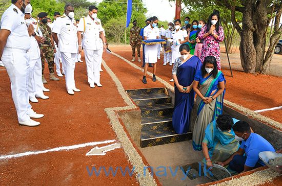 President Navy Seva Vanitha Unit (NSVU), Mrs. Chandima Ulugetenne on 10th October 2021 laid a foundation stone for a new Pre-school and Day Care Centre building at SLNS Barana, in a ceremony presided over by Commander of the Navy, Vice Admiral Nishantha Ulugetenne.