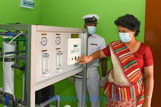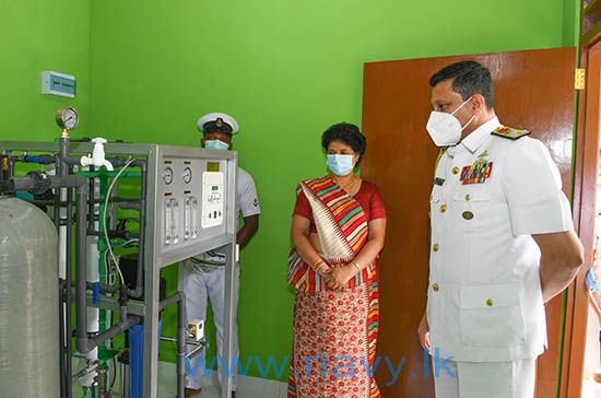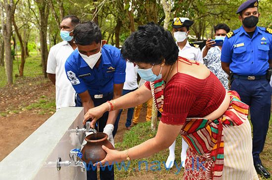 The Reverse Osmosis plant installed at the Rajavigama Siri Sambuddha Galapitagala Temple in Karuwalagaswewa, Puttalam was declared open under the patronage of Commander of the Navy, Vice Admiral Nishantha Ulugetenne and the President Navy Seva Vanitha Unit (NSVU), Mrs. Chandima Ulugetenne on 09th October 2021. As part of its social responsibility initiative, the NSVU sponsored for this project which was carried out using able manpower of the Navy. At the request of the Deputy Chief Sanghanayake of the North Central Province, Ven. Panvila Gunarathana Nayaka Thero, the facility was made available at the temple by the Navy, for the benefit of community in surrounding villages.