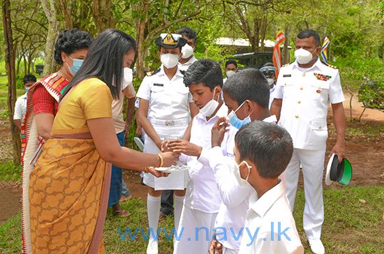 The event was held in compliance with COVID-19 protocols for the prevention of pandemic transmission. Commander Northwestern Naval Area, Rear Admiral Jayantha Kularathne, Executive Committee Member NSVU, Mrs. Udeni Kularathne, Senior Coordinator Naval Social Responsibility project, Captain WLN Gunasekara, Commanding Officer SLNS Thambapanni, Commander AM Abeysinghe, senior naval officers, Officer in Charge Karuwalagaswewa Police, Divisional Secretary of Karuwalagaswewa, staff of NSVU and a limited group of individuals were present on this occasion.